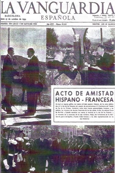 I en el 300è aniversari de la firma del Tractat, La Vanguardia Española del 27 d’octubre de 1959, sota la direcció de Luis de Galinsonga, publicava la portada que hem situat al costat de la poesia de Víctor Balaguer.