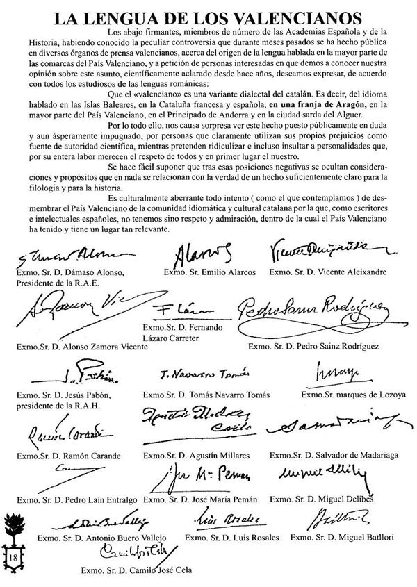 Crec necessari incloure copia de LA LENGUA DE LOS VALENCIANOS, 1975, RATIFICAT 1980.