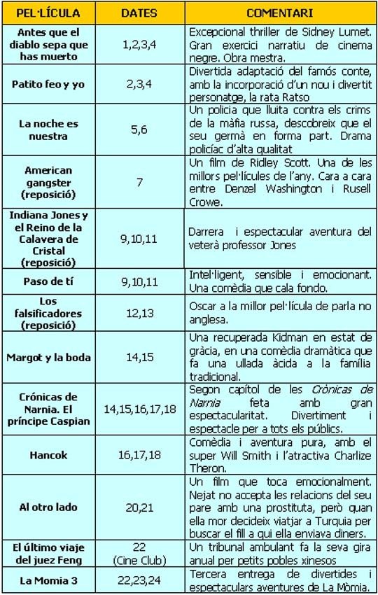 Estrenes del mes de agost