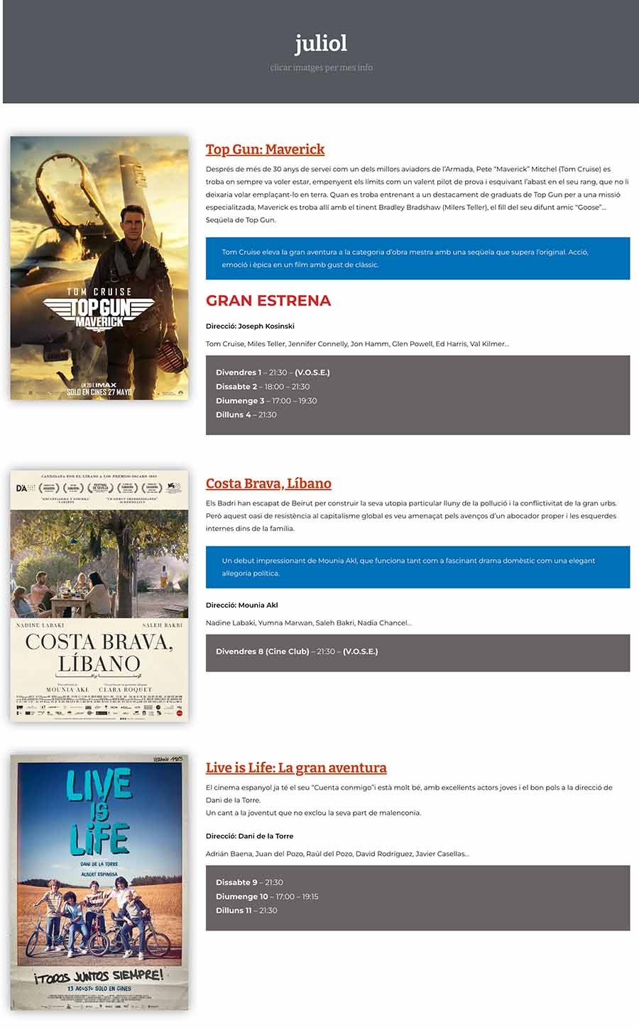 Aquesta programació pot canviar a última hora, suggerim que consulteu sempre la web oficial del Cinema Montgrí. www.cinemamontgri.cat.