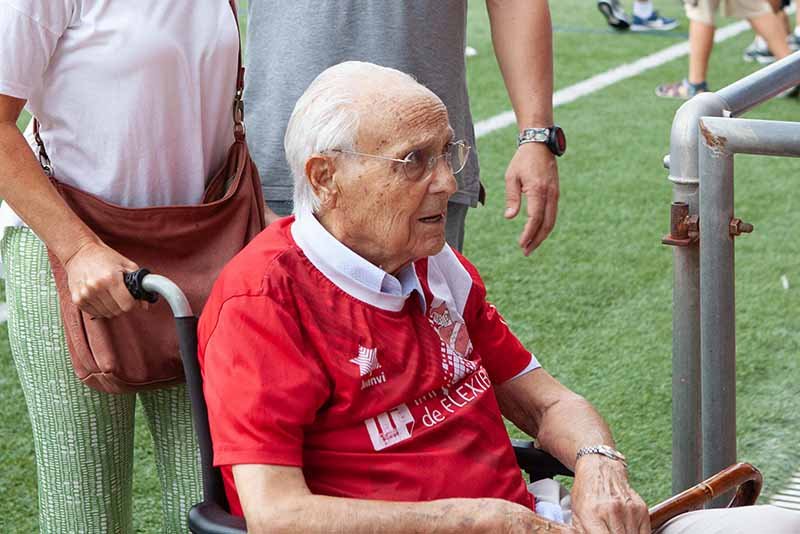 L’última vegada que ens vam trobar va ser ara fa uns mesos, celebrant el centenari al camp de futbol, on ell, juntament amb l’Anton Quer, va fer la sacada d’honor del Partit de les Llegendes. Aquell dia, malgrat que li vaig oferir el meu braç perquè s’hi recolzés a l’hora de fer la sacada, em va dir que no, que ja ho feia ell sol. I així ho va fer. Segurament va ser l’últim xut. Un xut que, tal com va deixar escrit a l’himne del nostre club i tal com passava en qualsevol conversa que tenies amb l’Eduard, la música sempre, sempre hi era present.