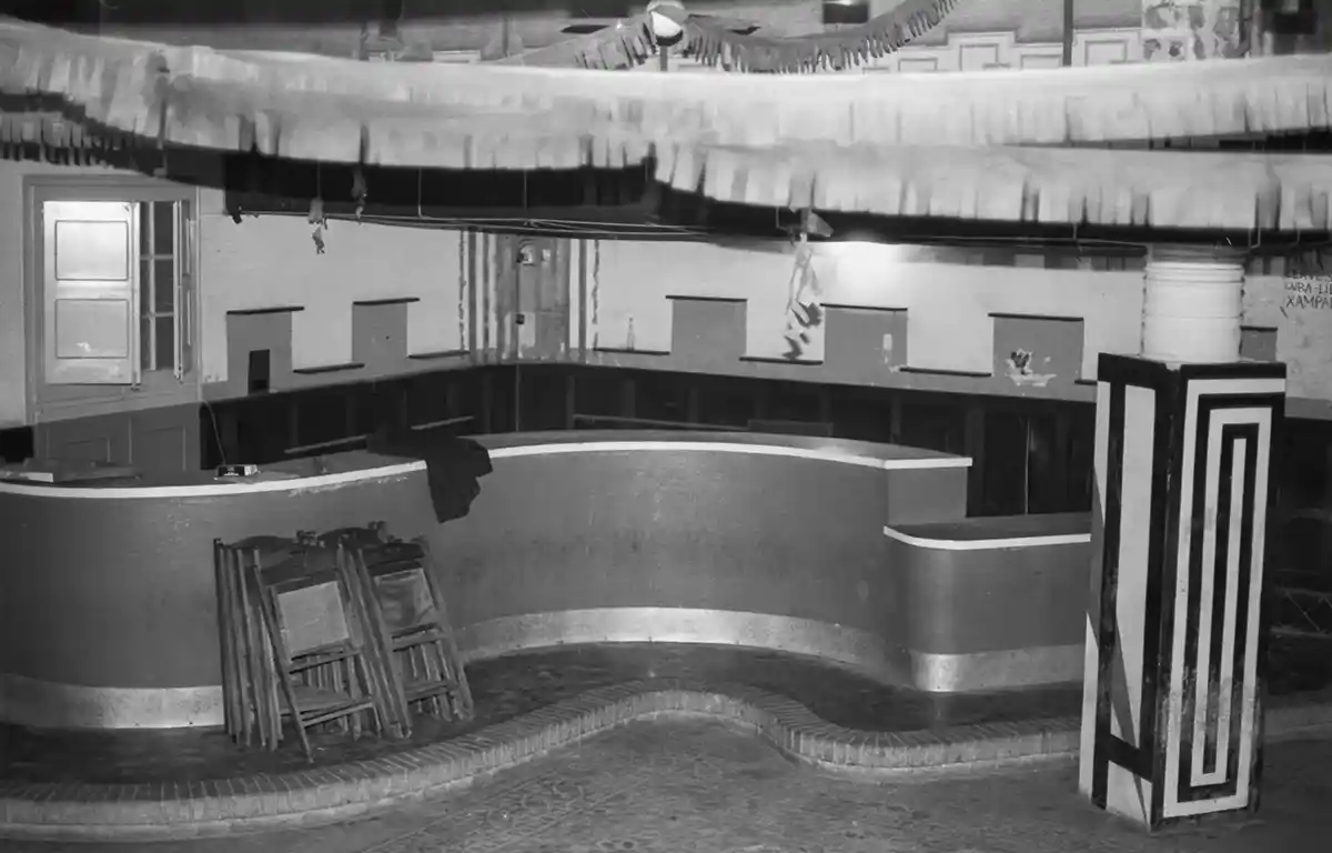 Del People’s, personalment, no en tenim massa records. Ens va agafar massa joves. Tot i això, algunes coses al calaix de la memòria personal sí que hi són ben presents. Com la fascinació que ens provocava quan, en sortir de la sessió de tarda del Cinema i passar per davant de la porta d’entrada de la discoteca, tancada amb una gran cortina vermella després d’un petit rebedor, sentíem la música que venia de dins i també vèiem el jovent que hi entrava després de comprar-ne l’entrada en una petita taquilla que s’obria en un dels finestrals de l’antiga sala de ball que, sortosament, es van conservar.