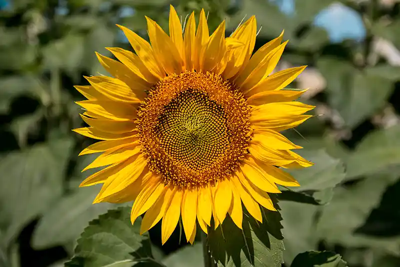 Una de les seves principals singularitats és el seu fototropisme o capacitat de respondre a estímuls lumínics, seguint el moviment del sol en estadis joves, fins poc després d’iniciada la floració. La seva inflorescència és en forma de capítol, el qual conté un nombre molt elevat de flors. Les de la vora són ligulades, normalment de color groc, i tenen la funció d’atreure els insectes pol·linitzadors. La resta són tubulars i donen lloc al gra, que és un fruit en forma d’aqueni. Les varietats que actualment es cultiven són híbrides, amb un únic capítol.