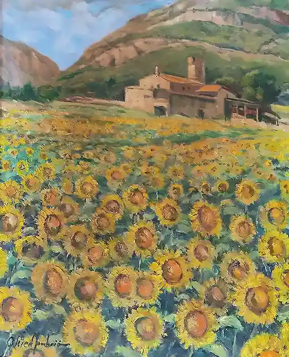 A inicis de l’estiu, entre finals de juny i durant la major part del juliol, el paisatge agrari del Baix Ter s’ha transformat amb l’aparició de nombrosos camps de color groc. És una de les conseqüències d’un augment de la superfície sembrada de gira-sol, una planta amb una bella inflorescència. Sovint, en parcel·les situades a prop de carreteres i camins, s’observava gent fent-se fotografies entre el cultiu. Recordo, fa pocs anys, la trobada amb l’artista Marta R. Chust, en el marc del projecte Un cotxe al costat d’un camp de gira-sols, guardonat amb la menció especial d’Art Jove del Festival Inund’Art, en el qual analitzava l’impacte del conreu en el paisatge del Baix Empordà. En un àmbit més personal, retinc la imatge del meu avi fascinat pel cultiu, fins el punt que va demanar al pintor torroellenc Jesús de la Cruz que li pintés un quadre de gira-sols amb la Torre Bagura al fons, que encara està exposat a la sala principal de la masia.