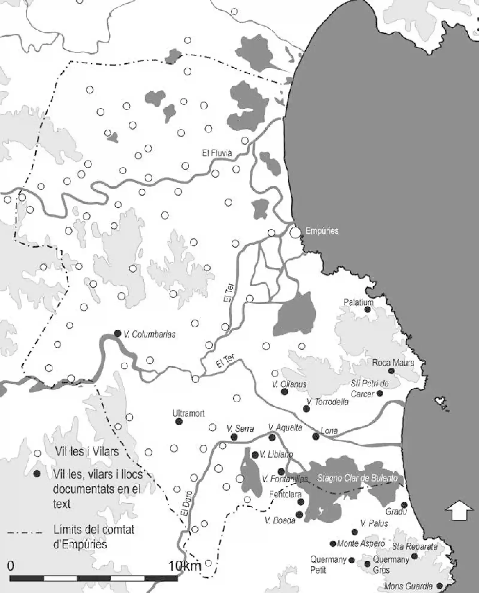 - A l’oest: ipsa Lona → Zona d’estanys o aiguamolls entre Ullà i Gualta (documentada als Annals de l’Institut d’Estudis Empordanesos)