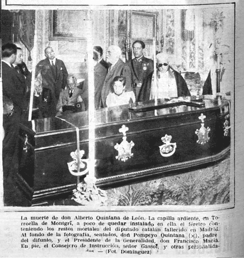 de Quintana i el taüt fou portat a l’espatlla pels socis el Centre Republicà seguit per una multitud de corones. El poble de Torroella va sortir en massa per acomiadar a l’il·lustre torroellenc.