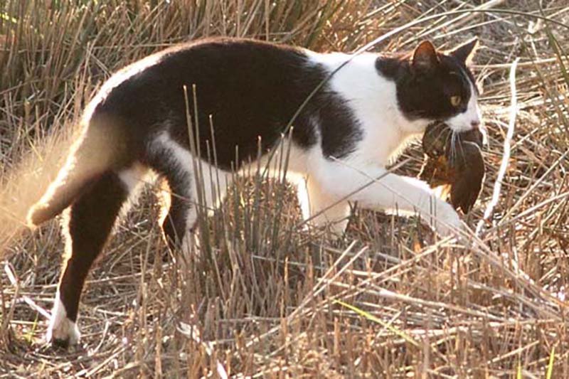 Més greu resulta encara un altre depredador, més petit però molt més astut i molt millor caçador, que són els gats domèstics. Els mateixos animals que ens fan companyia a les nostres llars marxen, sovint sense cap mena de control, a dins del Ter Vell, aprofitant que l’espai natural és a tocar de les cases i els carrers on viuen, i provoquen una depredació sobre la fauna salvatge molt menys cridanera que la dels porcs senglars, però d’efectes igualment terribles per als moixons que allà s’hi troben.