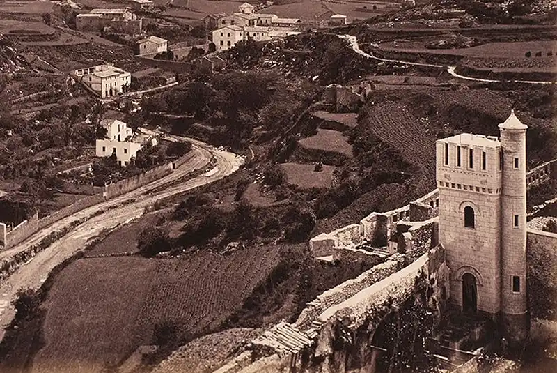 Aquesta parcel·la, que havia estat propietat del capítol de la catedral de Girona i posteriorment desamortitzada, fou adquirida per Massaguer l’any 1851. En aquesta propietat, com a símbol d’ascens social, hi va fer construir una pintoresca torre d’esbarjo. La construcció, que tenia l’aspecte d’una torre medieval, a mitjans del segle XX esdevindria la protagonista d’una insòlita història relacionada amb fenòmens esotèrics.