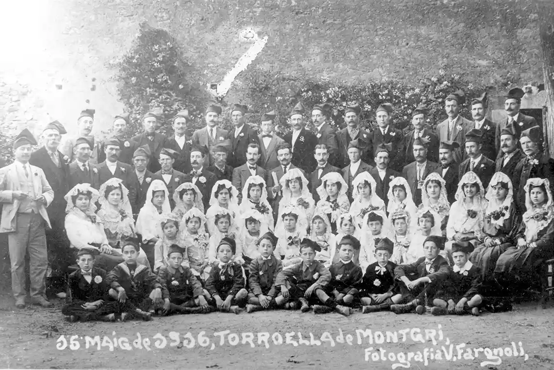 PD: Els personatges de la fotografia són: fila de dalt i d’esquerra a dreta, Mercè Viñas, Santiago Bou, Rosalia Negra, Paco Mas, Siseta Cristòfol, Josep Garriga. Pepita Iglesias, Pere Negra, Joana Iglesias, Josep Vert, Paquita Janoher, Miquel Cristòfol, Teodor Carreras. Fila de baix : Pepito Rubau, Joan Vilella,, Josep Castells, Pere Busquets i fonquern «Pei». Font: llibre «Imatges històriques de Torroella i L’Estartit», Museu del Montgrí i Baix Ter.