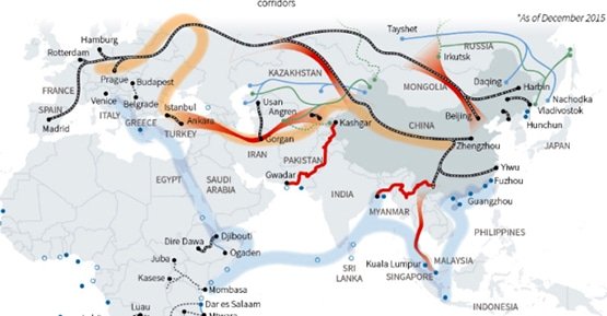 Per tal de sostenir el ritme de desenvolupament i creixement econòmic que garanteixi que cada cop una major porció dels seus més de 1.300 milions d’habitants accedeixin a la classe mitjana, el govern va impulsar el 2013 la “Iniciativa del Cinturó i Ruta de la Seda”. El projecte s’inspira en l’antiga ruta de la seda per connectar la Xina al món i reposicionar-la al centre del mapa geopolític global. El pla preveu mesures de caràcter diplomàtic i cultural, que millorin la percepció de la Xina a l’estranger i ajudin al desenvolupament del sector turístic. També va acompanyada de mesures monetàries per tal que la moneda xinesa, el yuan, competeixi amb el dòlar i l’euro com a divisa de referència. Però el gruix del pla se centra en el desenvolupament d’infraestructures que permetin a la Xina importar recursos naturals de mig món i exportar els seus productes a l’exterior. En concret, el pla preveu la construcció de grans ports comercials al llarg de la costa xinesa, en illes del Pacífic i de l’Índic, en punts tan crítics com el Mar Roig, també al Mediterrani, així com a les costes tant orientals com occidentals del continent africà. Els ports africans permetran traslladar minerals i hidrocarburs que l’economia industrial xinesa demandarà en augment, extrets de països productors com ara Nigèria, el Camerun, Angola, la República Democràtica del Congo o Sudan del Sud. Molts d’aquests països quedaran també connectats amb la construcció de nous oleoductes i ferrocarrils que Xina preveu que creuin el continent. A Euràsia, el pla hi divisa el desenvolupament de sis grans corredors econòmics, que connectaran el territori xinès amb Malàisia i Singapur, la Índia, el Pakistan, Turquia i l’interior de Rússia. En gairebé tots els casos, aquests corredors es concreten en el desenvolupament d’oleoductes, gasoductes i de vies ferroviàries per proveir d’energia el gegant xinès i intercanviar productes comercials. De fet, en els darrers dos anys, els primers combois de tren ja han connectat els grans centres industrials de la Xina oriental amb el centre d’Europa i fins i tot amb Saragossa i Madrid. La previsió és que el projecte no es completarà fins el 2050 i suposarà una inversió total propera als 900.000 milions de dòlars.