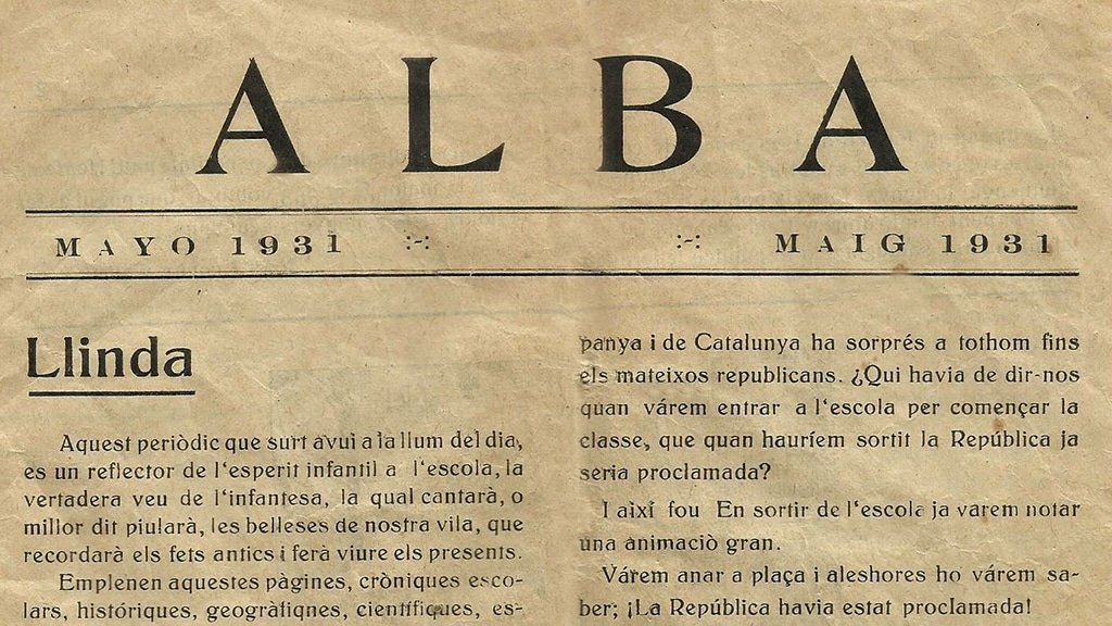 Quan es fa endreça de papers en una casa, es poden tenir sorpreses, ho sap tothom per experiència. Com a conseqüència d’una d’aquestes mogudes, un amic ha trobat fa ben poc a casa seva una petita revista, publicada a Torroella el maig de 1931, que m’acaba de fer a mans. Ni ell, ni jo, ni altres persones que l’han vista, no n’havíem sentit a parlar mai, molt probablement se’n va publicar només un número. Es diu “ALBA”, consta de 8 pàgines, va ser impresa a l’impremta Casadevall i és bilingüe. A primera plana, a sota del títol, a banda i banda, diu: “Mayo 1931” i “Maig de 1931”, i a sota hi ha una “Llinda”, que signa Josep Thomás i un article que porta per títol “Proclamació de la República Espanyola i de la Generalitat de Catalunya”, de Joan Lloret Capellà.