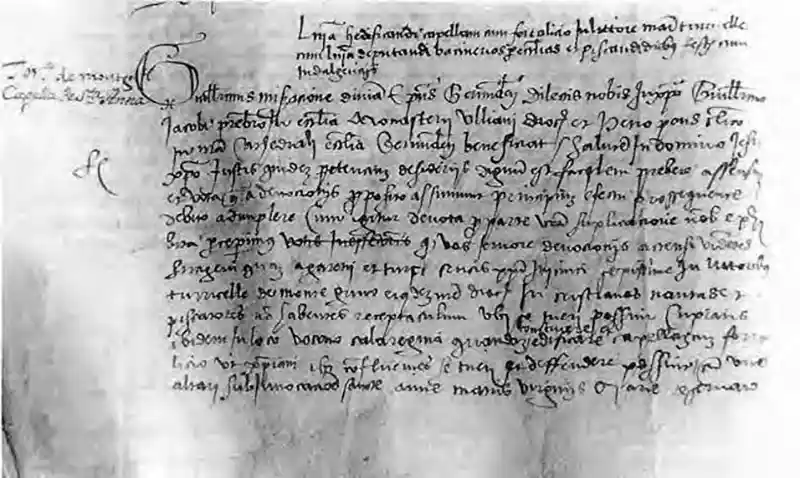 El bisbe Boil indica a la seva llicència que ha rebut una petició per part de Guillem Jaume «capellà a l’església del monestir de la diòcesi d’Ullà» i Pere Pons «escrivà a la nostra catedral de Girona» i que «veu la devastació que agarens [àrabs] i turcs, enemics de la Creu de Crist» han provocat al litoral de Torroella de Montgrí i també a les diòcesis. Cita també el bisbe a Lluís Pons, de Torroella, la família del qual tenia atorgat el privilegi de construir molins i preses al riu Ter, un privilegi que mantindrien fins el s. XIX i a qui interessava la màxima seguretat a la zona.