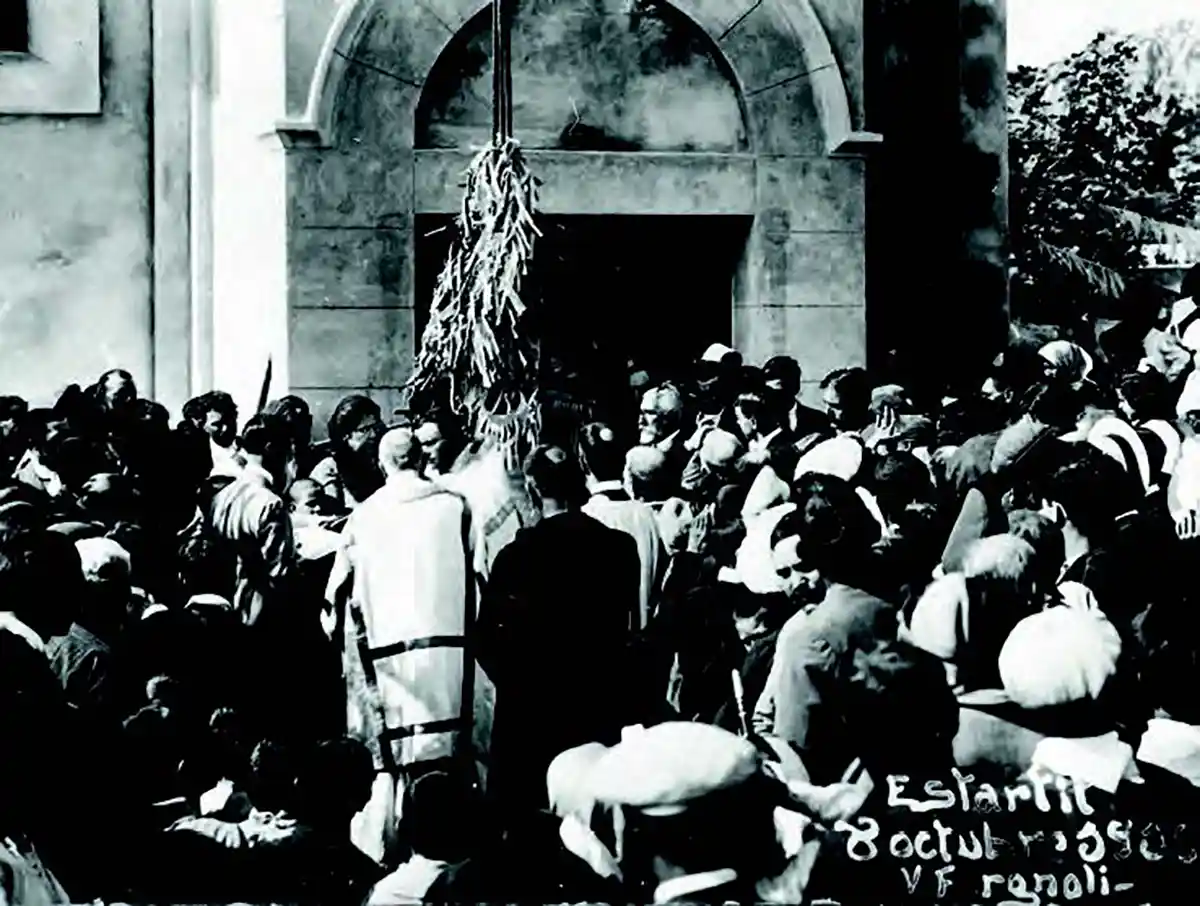Les fotos que prengué d’aquell acte el fotògraf Valentí Fargnoli ens mostren les autoritat en comitiva, precedides per la cobla de músics. «la cercavila de les autoritats estava acompanyada del mossèn de l’ermita, en Joan Valls, prevere; a més dels capellans de Torroella, del Sr. Bisbe de Girona, d’un diputat i de totes les autoritats del poble», escriu Miquel Graells. L’acte va ser definit com a «brillantíssim» i una veritable festa per a tot el poble, amb les benediccions, els parlaments de les autoritats damunt la tribuna, i regals de joguines, monedes, confits i fruits secs.