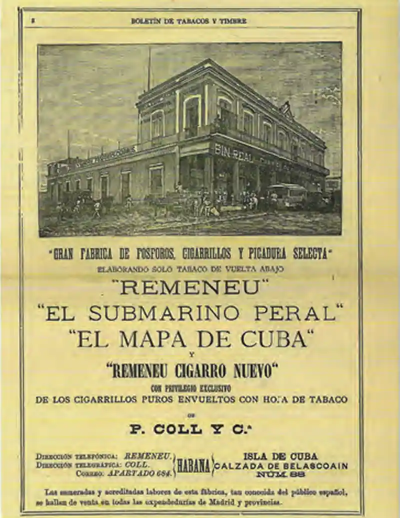 Fósforos de Remeneu va fer la competència directament al monopoli estatal i un cartell de publicitat així ho ressaltava: «Perico Coll, destructor del monopolio fosforero», repte que va mantenir quan es va dedicar al negoci del tabac. Com que Coll no va aconseguir l’acreditació que li permetia fabricar i vendre cigars a Espanya, va optar per obrir mercat i vendre la producció als Estats Units, on els cigars es valoraven a més alt preu. A la façana de la seva fàbrica hi figurava la llegenda, un punt irònica, de «La sin real fábrica de tabacos».