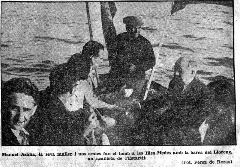 Manuel Azaña anava acompanyat a més per Francesc Madrid, Brauli Solsona (periodista i polític valencià), el capità Artur Menéndez i el comandant Josep Guarner. Tot seguit van pujar a la barca La Veterana «Una barca molt marinera, que voltà valentment les illes jugant amb les ones, balancejant-se amb elegància i delit, talment com si sabés que calia quedar bé en aquella solemne ocasió». Després de la visita en barca per les Medes i alguna cala, Azaña baixant de la barca li va dir «que estava molt satisfet de l’excursió i que tan bon punt arribés a Madrid li enviaria un retrat en prova de gratitud i amistat»(2).