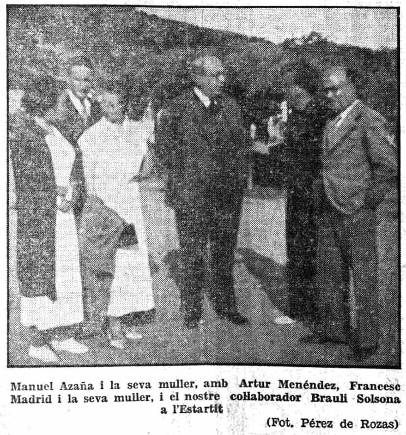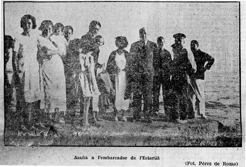 Fotos tretes del Diari «La Rambla», núm 265, any 5, de 20 d’agost de 1934. A la portada, article «Manuel Azaña a la platja de L’Estartit» per Brauli Solsona. Fotos de Carlos Pérez de Rozas.