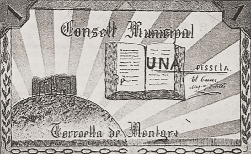 El “Consell municipal” de Torroella també va aprofitar la disposició i va llançar una emissió de bitllets d’1 pesseta. A l’anvers hi era representat, molt toscament, el castell del Montgrí, al cim de la muntanya envoltada de grans raigs; al seu costat, un llibre obert, i el text: “Consell municipal. Una Pesseta. El Caixer, Miquel Fontàs. Torroella de Montgrí”. Al revers, un dibuix del Partenó d’Atenes, la sèrie i el número del bitllet. El mestre Dabau diu a les seves memòries que la impressió es va fer a Torroella mateix, a la impremta Casadevall. I si de les monedes anteriors els torroellencs n’havien dit pahines, de les pessetes que les van substituir sota el mandat del Borni, en van dir bòrnies.