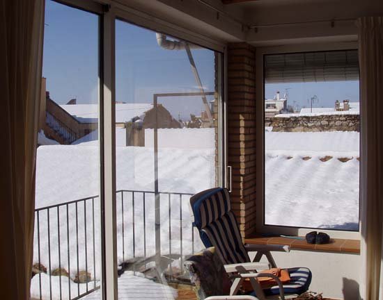 I el dimecres…, quin canvi! Ja el dimarts al vespre s’havia girat un vent fort, gèlid, la neu s’havia glaçat i el seu pes no el podien aguantar les delicades plantes, les fràgils branques dels arbres, els fils, els pals i les torres d’electricitat. Els carrers i les carreteres eren impracticables. La neu gelada s’havia convertit en pesants blocs de gel difícils de treure de davant de les portes i portals. Al carrer, corries el perill de relliscar o que et caigués al cap un tros de neu de les teulades… Un desastre! Tota aquella alegria del dimarts se’ns havia convertit en pena, angoixa, impotència. A les quatre de la tarda del dilluns dia 8 de març va fallar el subministrament elèctric, per la qual cosa vam quedar sense telèfon, ni fix ni mòbil. Va minvar fins a desaparèixer el subministrament d’aigua potable, no hi havia pa, correu, diaris… Gràcies a un aparell de ràdio amb bateria ens vam poder assabentar que la situació era catastròfica, i que resultava impossible desplaçar-se amb cap mitjà de transport, ni amb cotxe, ni amb tren, ni a peu… Qui ens havia de dir que tota la bellesa d’aquell deliciós matí del dimarts dia 9 de març esdevindria un cúmul de disbarats, disgustos i pèrdues materials!
