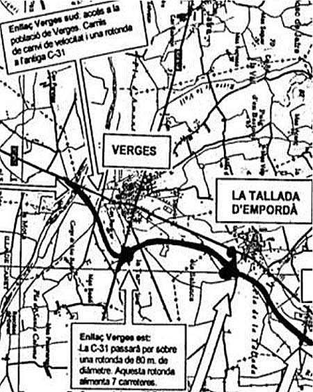 Aquesta variant que havia de formar part de la millora de la C-31 entre la Tallada i Torroella de Fluvià, ha topat amb la oposició de l’ajuntament de Verges. El projecte de la Generalitat preveu fer una carretera enlairada, per la banda est, que passaria sobre una rotonda de 80 m. i que donaria servei a 8 carreteres.El conseller Nadal va exposar que les negociacions estaven avançades. Creiem que el nostre ajuntament ha estat consultat sobre el projecte, donada la importància que té, la seva solució, per a Torroella de Montgrí.Les variants de Verges i de Parlavà són fonamentals per a les comunicacions de la nostra Vila.