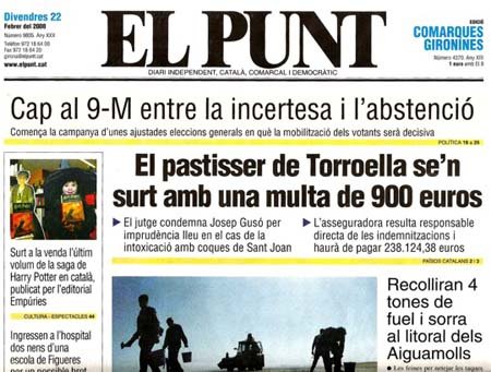 Sentència en el judici contra la fleca Gusó de Torroella de Montgrí.Ha finalitzat el llarg procés. I, una vegada més el titular de la noticia ha aparegut en la primera pàgina de El Punt. I no deixa de ser molt explícit quan la seva redacció és: El pastisser de Torroella se’n surt amb una multa de 900 €. Les indemnitzacions a 400 dels 1500 afectats, molt menors que les previstes, aniran a càrrec de la companyia d’assegurances.Els abocats dels perjudicats han anunciat la seva intenció de recórrer contra la sentència.