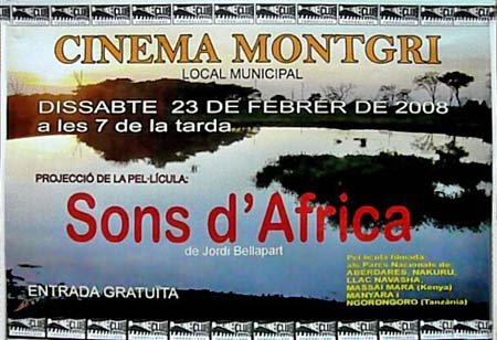 SONS D’ÀFRICA, un documental de Jordi Bellapart. Tanquem la miscel·lània de notícies, amb la corresponent a la projecció, al Cinema Montgrí, de la pel·lícula en la que Jordi Bellapart relata, amb poesia en els texts, qualitat en les imatges, música ben escollida i molta feina ben feta en el muntatge, el seu viatge. Casa Museu de Karen Blixen, Parcs naturals d’Aberdare Nakuru, Llac Navasha, i Massai Mara de Kenya, i de Tanzania: Manyara i Ngorongoro. Sense oblidar el fet que diferències tribals i interessos espuris, poden enrunar avui un país com Kenya.En la presentació de la projecció anuncià al propi temps la intenció de crear un punt de trobada per a tots els cineastes amateurs que pretenguin fer, amb imatges, quelcom més que un record d’un episodi familiar.
