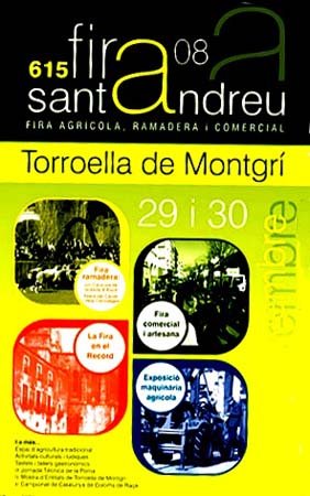 615 Fira Sant Andreu 2008: Sis-centes quinze, així en lletres, és un nombre que referit a anys d’un esdeveniment comparat amb la durada d’una generació humana, en representa 25. Vint-i-cinc generacions de torroellencs que han celebrat la nostra fira! Amb un programa que any rere any, resumit i tot, sobrepassa l’espai de què disposem.