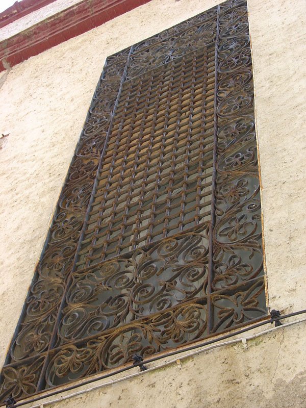 Aquesta reixa tan singular està situada al carreró de les monges vermelles, en un immoble en venda.