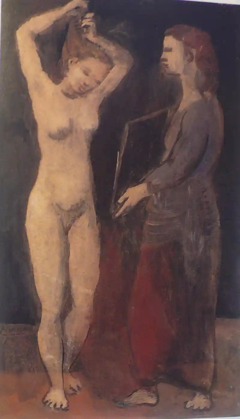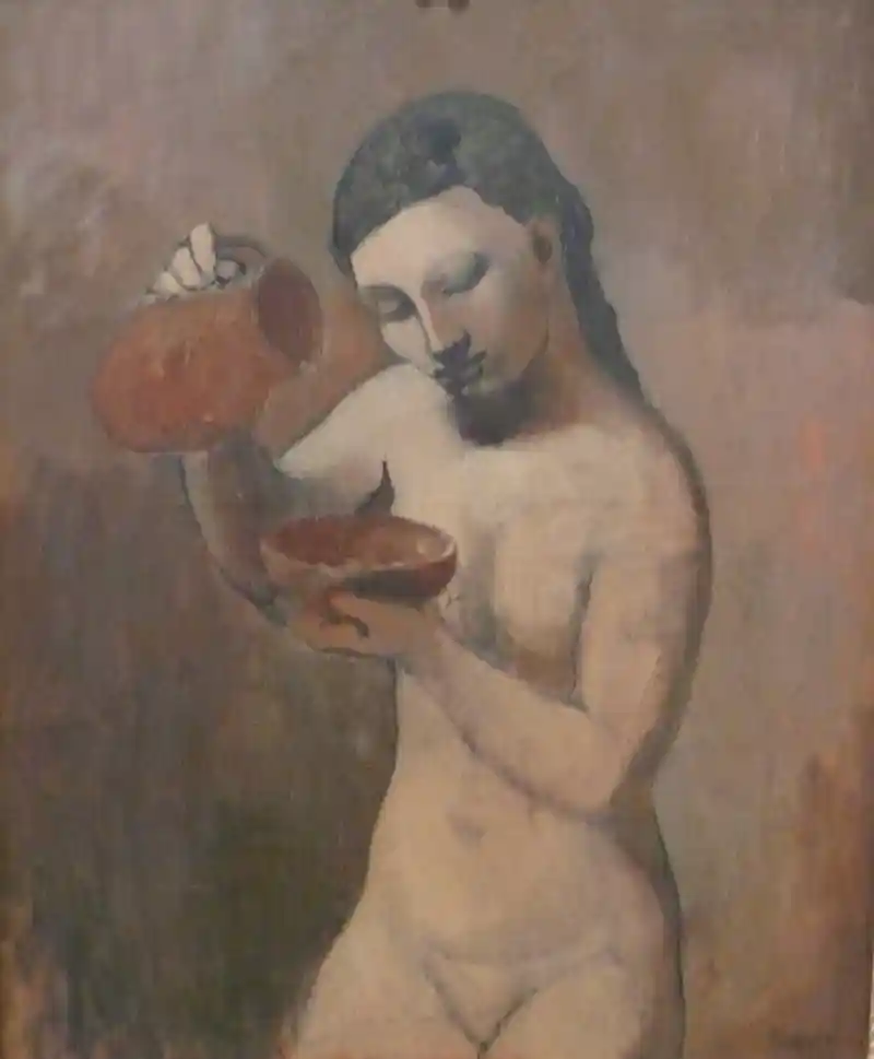 Picasso, per altra banda, entra en contacte amb les pintures pompeianes a l’entorn de la descoberta dels frescos de la vil.la de Boscoreale que s’exposaren a Paris (1). L’obra “l’atleta” i “Dona amb ventall” del 1905, reflecteixen clarament aquesta influència.