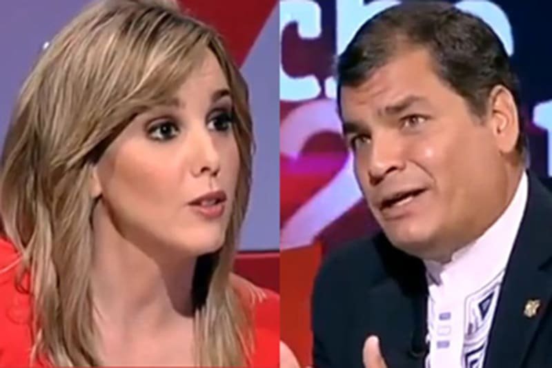 I ve a veure’ns, després de reunir-se amb Angela Merkel, i s’asseu davant de les càmeres, a pèl, al programa La Noche en 24 Horas de TVE, davant d’una bona, molt jove i segurament per això molt agressiva periodista. L’oportunitat per a ella fou única, però no va treure de polleguera el president equatorià del taló d’Aquil·les del populisme: la intransigència amb els mitjans de comunicació dissidents amb la gran revolució de torn.