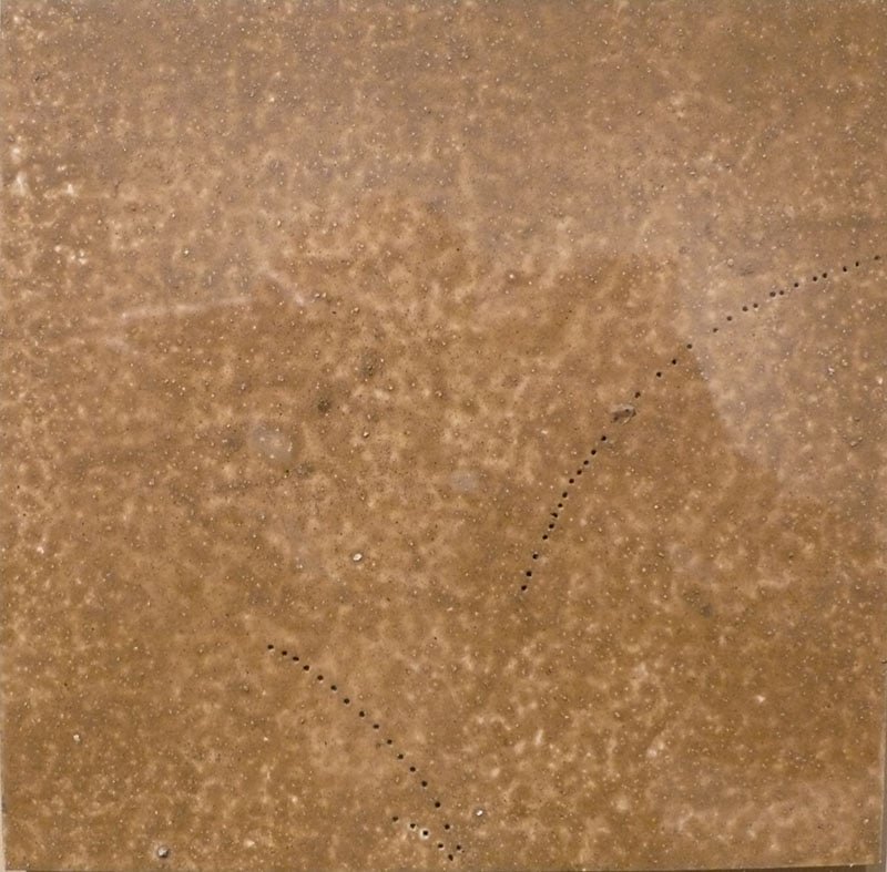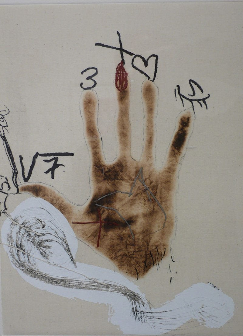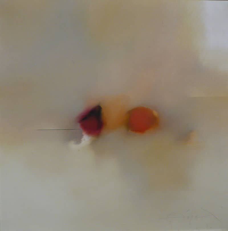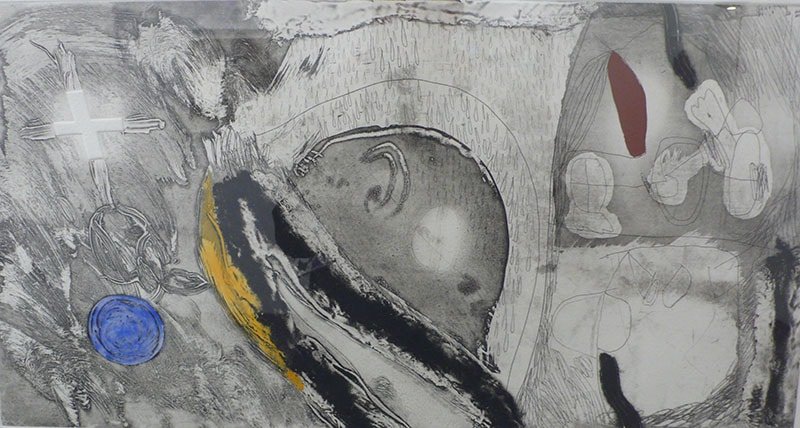 La Galeria Mayoral ens presenta una selecció de pintures abstractes de Fernando Zóbel (Manila,1924 – Roma,1984 ) que mostren la finesa i delicadesa del seu informalisme, com una variant personal de l’expressionisme abstracte (Fig.4). Aquesta interesant exposició té com a contrapunt de la pintura de Zóbel unes magnífiques escultures de Chillida. A la Galeria Tàpies ens trobem amb un conjunt de gravats de Tàpies, on es veu el seu talent per la síntesi simbolista de signes i matèria, que apareix interpel·lant-nos al llarg de tota la seva obra (Fig.5).