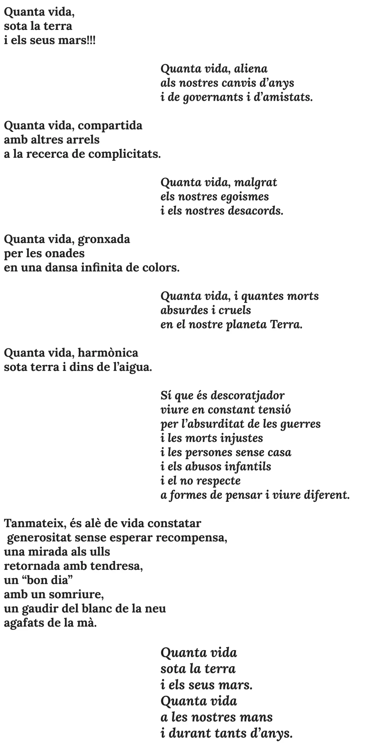 Aquest escrit llegit la nit de Cap d’Any compartint el sopar amb uns amics, vol ser un diàleg entre el que es veu a la llum del dia i el que no es veu i que treballa silenciosament.