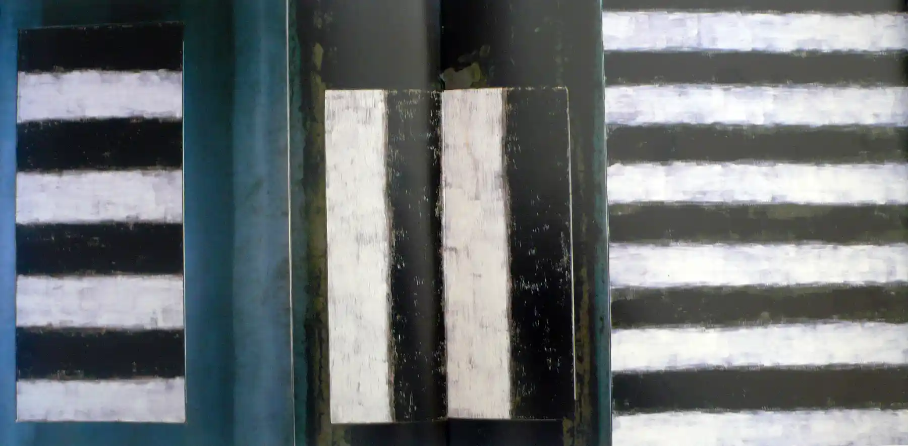 Scully es preocupa de mostrar el rastre de la pintura i ens interpel·la amb la juxtaposició de franges de color. Franges que ens mostren uns marges, marges que en comptes de separar, dialoguen amb els colors. Scully aconsegueix una síntesi enmig de la dualitat de la seva obra. Dualitat, que la situa en el mateix univers espiritual que les religions. Síntesi, que a partir d’una obra elaborada de manera, “molt senzilla, però carregada d’un sentiment molt substancial, que per a mi és el que crea les obres més profundes i més emotives”, en paraules del mateix pintor (6). (Figs. 5 i 6)